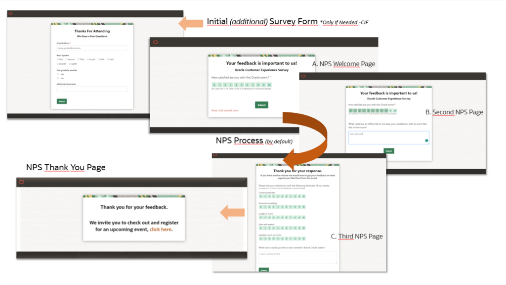 Flow: Additional Survey Page → Net Promote Score(NPS) Survey page → Thank you page.