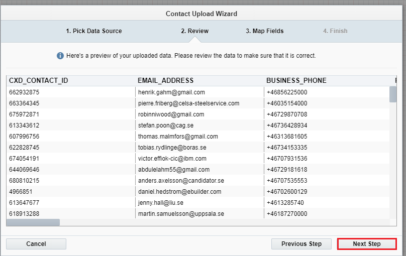 In this section, you can see the steps you'll follow to upload the final list to Eloqua using an Excel list.