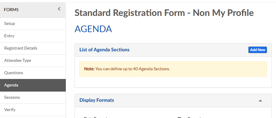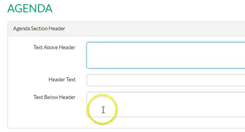 Follow these steps to make changes to the header text in the online form and group the agenda sessions.