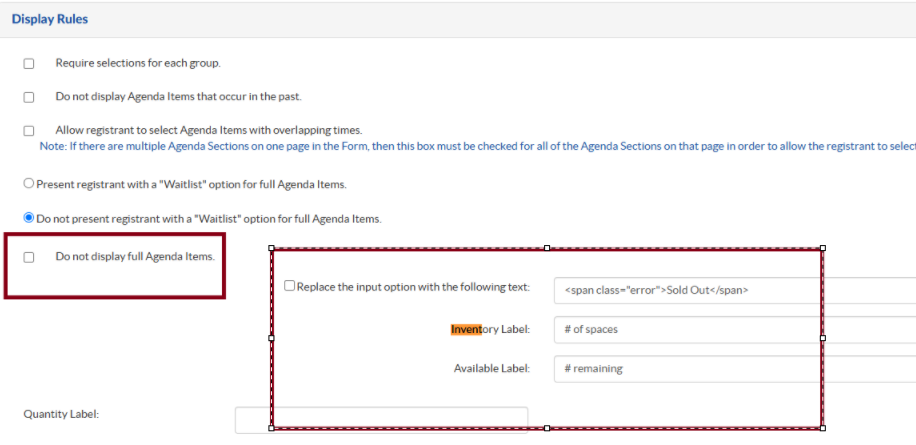 - You can enable the waitlist option for all Agenda items by selecting 'Present registrant with a "Wailtist Option " for full Agenda Items.'
