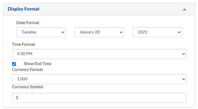 - Under Display Format, select the desired configuration options.
