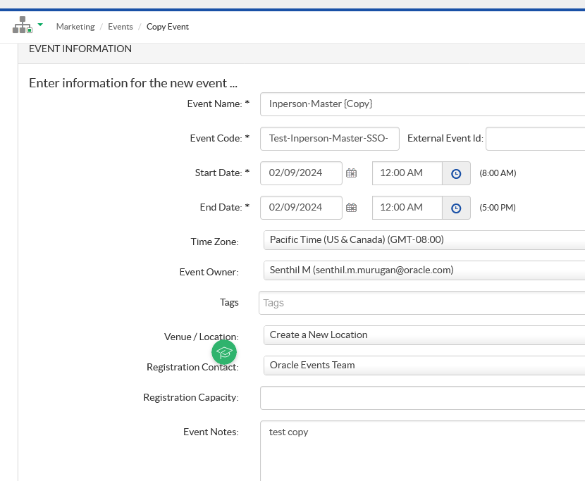 In this section, you will find steps for publishing events on events.oracle.com, also known as the events search page.