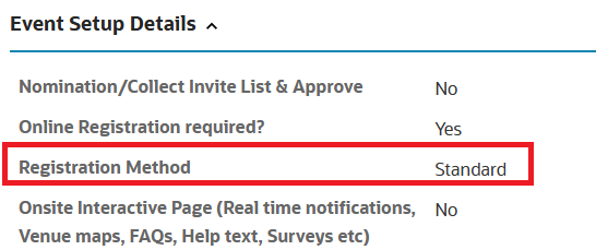 Ensure, the registration method has been selected as "Standard" in the event request before processing for the Standard Registration setup.
