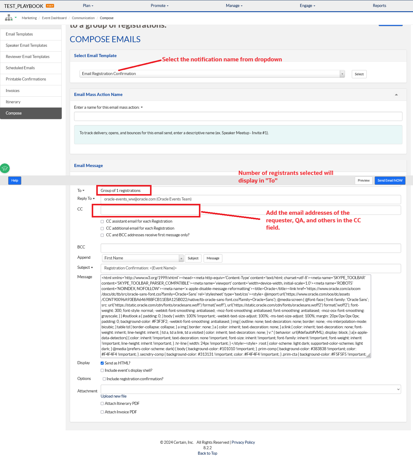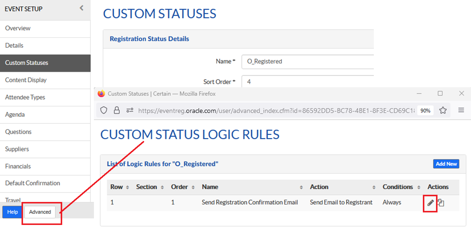 'Add New / Update Registration – For Oracle Use ' is added to the In-Person Event Master template and is used by registration support users within Certain to add their registrants at event time.