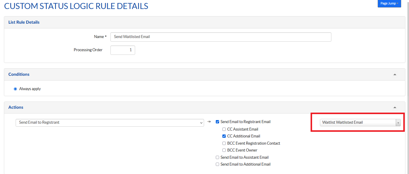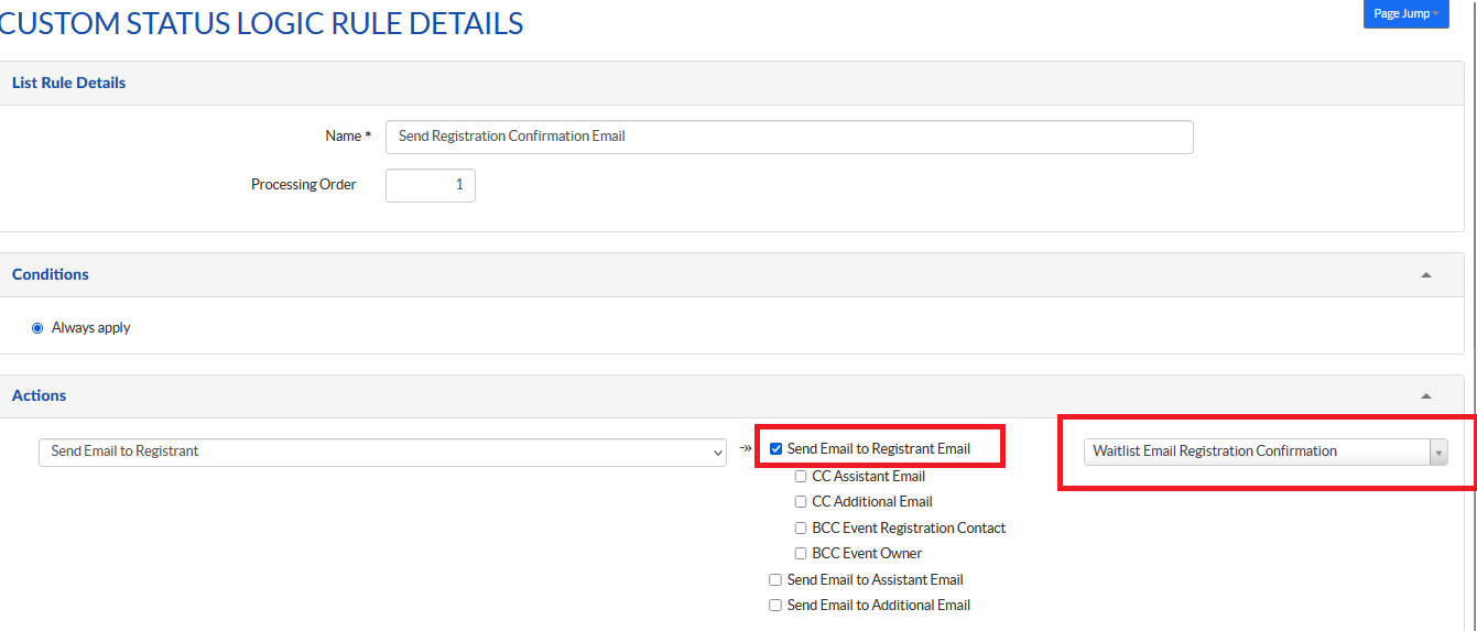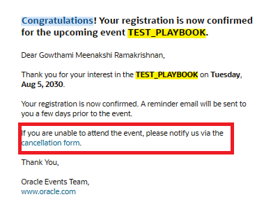 This cancellation form link has been enabled or updated in the waitlisted confirmation email. The logic has been set as default, and we don’t recommend adding or removing any logic or profile fields under this section.