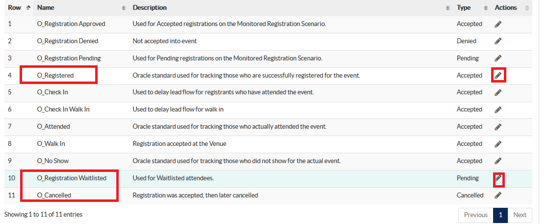 You must associate the notification pages with the following custom statuses for Waitlisted registration(No action from Demand Center as it is already set, just verify). Refer to the steps and screenshot below to set the custom statuses.