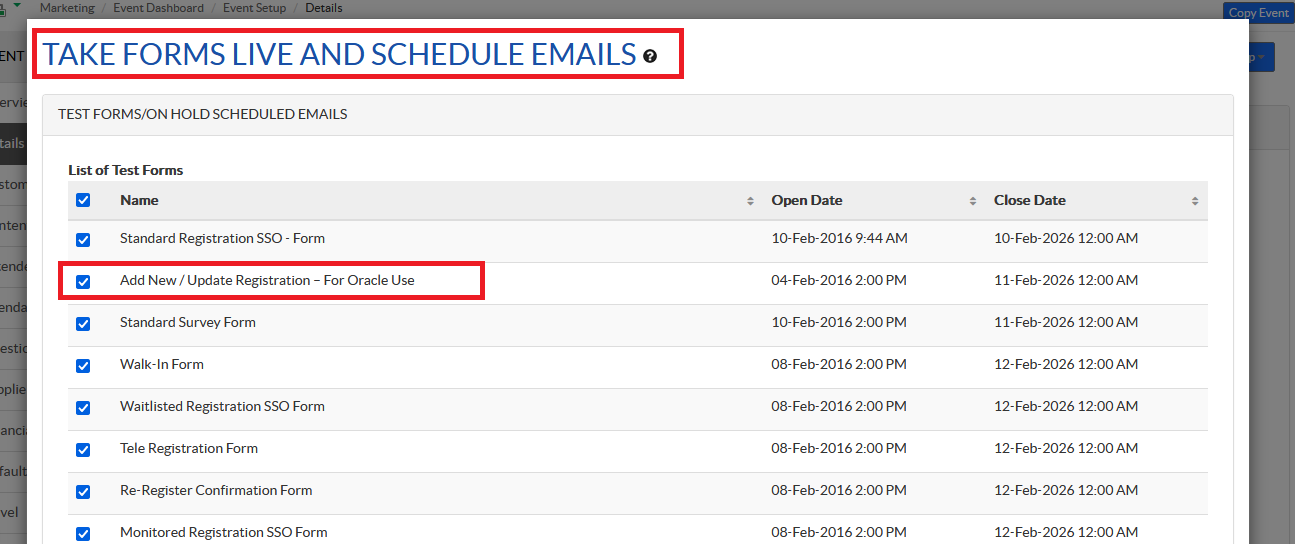 Ensure that registration method has been selected as “Waitlisted” in the event request before processing for the Waitlisted Registration setup.