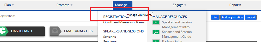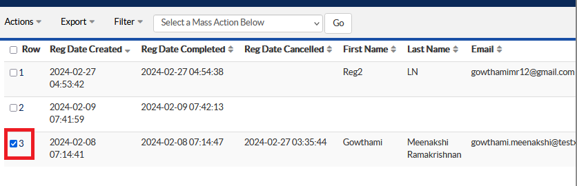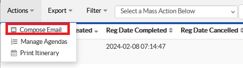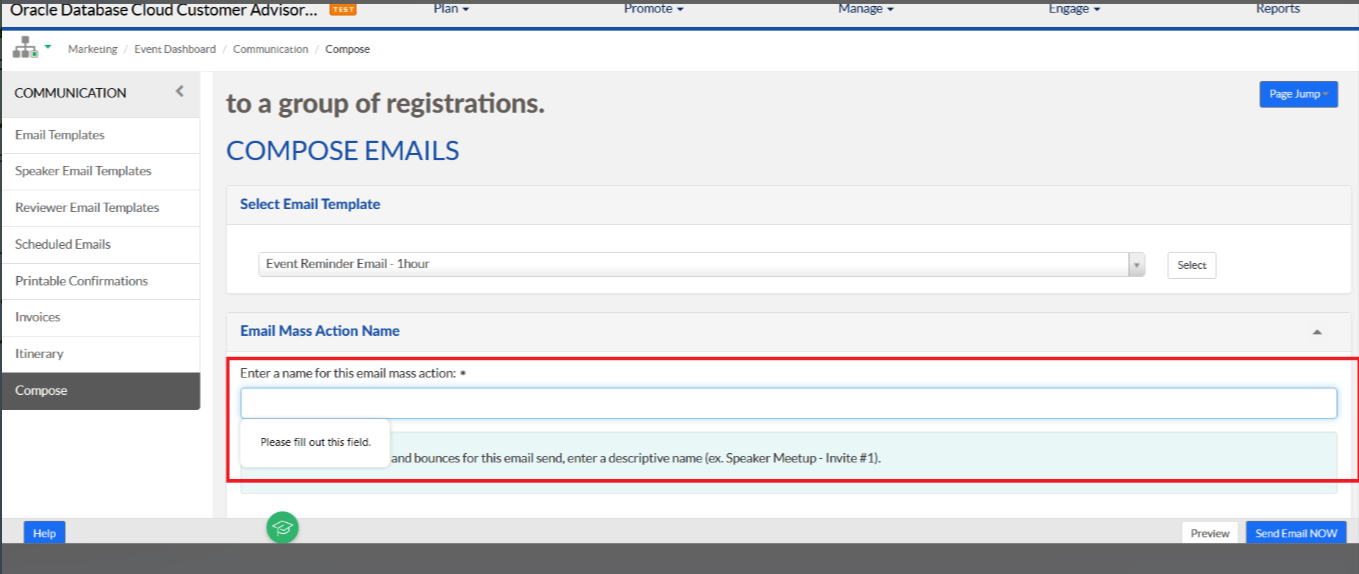 A new field is been added to capture the name of the Mass Action so we can add a unique value to associate a name with the group of registrations getting these emails. The purpose of this new feature is to track delivery, opens, and bounces for this email send. You can then track this mass action email send under Manage > Registrations > Email Analytics tab.