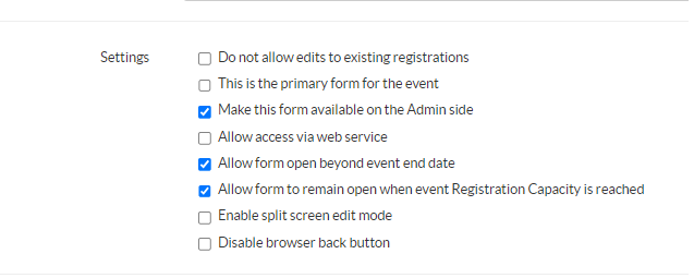 The Standard Event Template form should be copied and used for Waitlisted Registration