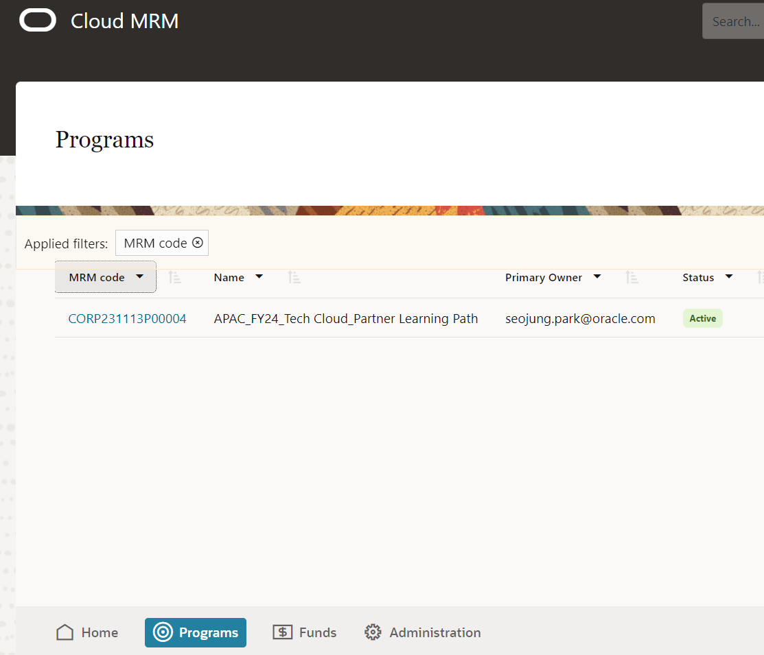b) Verify Program code status: Go to MRM ➔ Search with Program code ➔ Check the Status