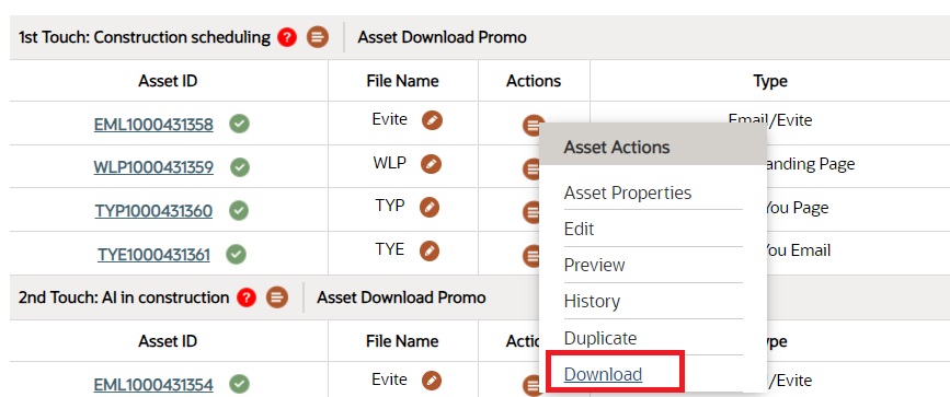12. After updating the values in stage properties. Download all the assets again from the campaign