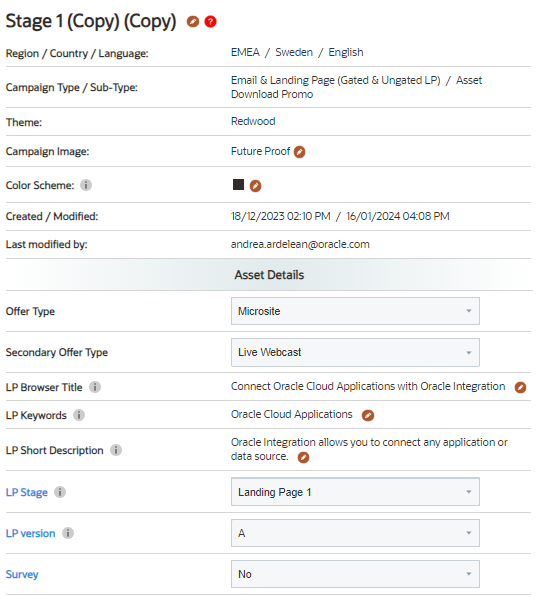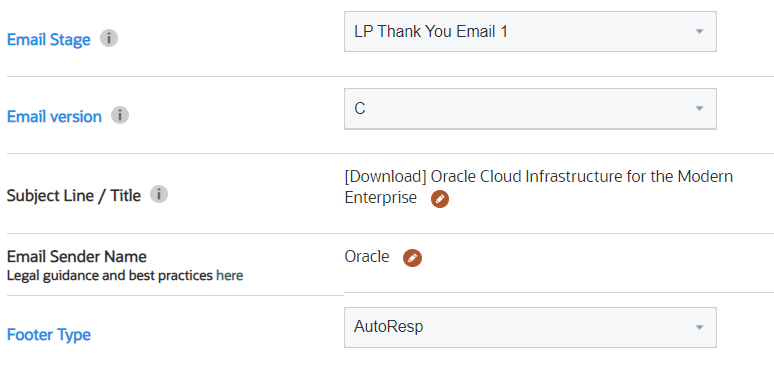 Once we create the landing pad links in Eloqua, go back to the Template builder and update the remaining fields to complete the campaign.