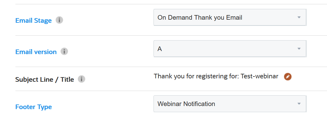 - Email stage should be on demand thank you email, footer type - Webinar Notification