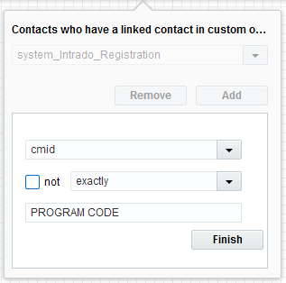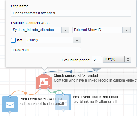 ● Use a Custom Compare Object to check how many of these contacts Attended the event checking contacts whose System_Intrado_Attendee with External Show ID is exactly PROGRAM CODE