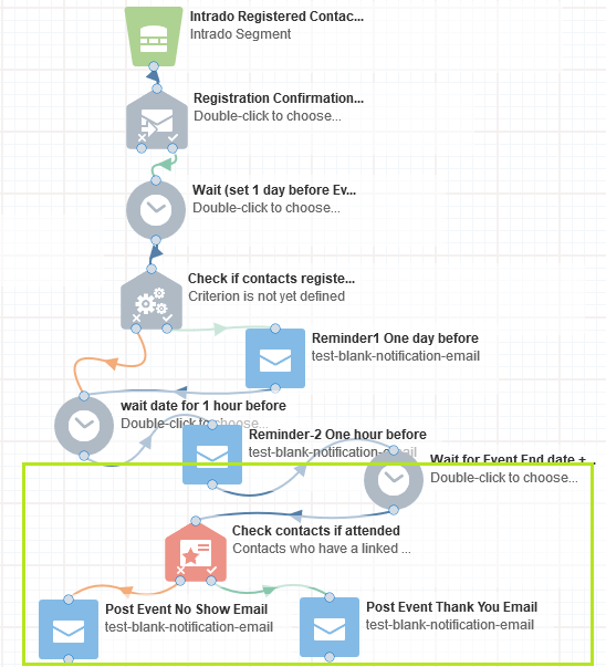 DO NOT Connect the post event emails in the Canvas until the content is ready and approved. Keep the canvas with Wait set to Event End Date +1 day from the Reminder Email 2.