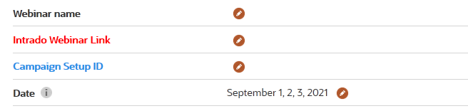 Identify the Eloqua Webinar setup ID (keep this handy to update in Template Builder -> Stage Properties -> Campaign Step ID) to connect Intrado to Welcome Page:
