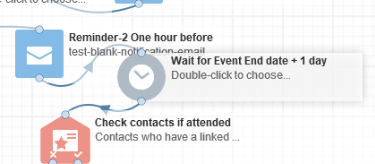 ● Attach to a Wait set to exactly 1 day before 'event start date time'