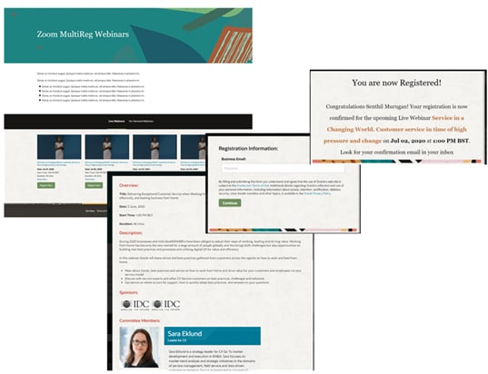 Zoom Webinar can be setup to support Multiple registrations from a single page that supports registrations for Live Webinars and On Demand Webinars.