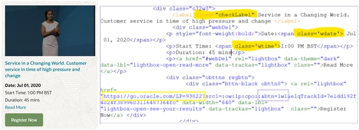 Class names which are highlighted in the webinar modules are important to fetch the values and display dynamically in the thank you page.