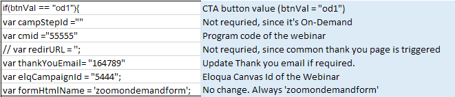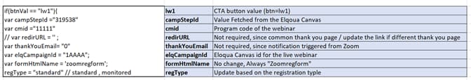 Note: Add the logic and validate the btn value (copy the live webinar logic and change the value to lw1, lw2… or copy the ondemand logic and change the value to od1, od2…).