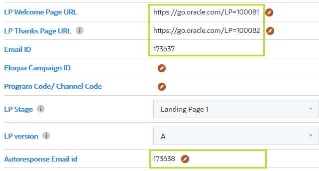 Once uploaded the LP Welcome Page URL, LP Thanks Page URL, Email ID and Autoresponse Email id can be found populated in Stage Properties.