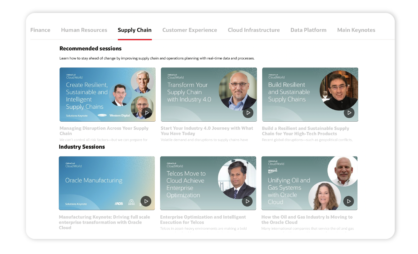 To create resilient and intelligent supply chains that can quickly adapt to dynamic conditions, organizations are leveraging end-to-end applications with real-time data and predictive AI-driven analytics that increase enterprise-wide visibility. Hear from supply chain leaders on how to optimize spend, enable on-time delivery performance, improve cycle times, and mitigate supply chain risks.